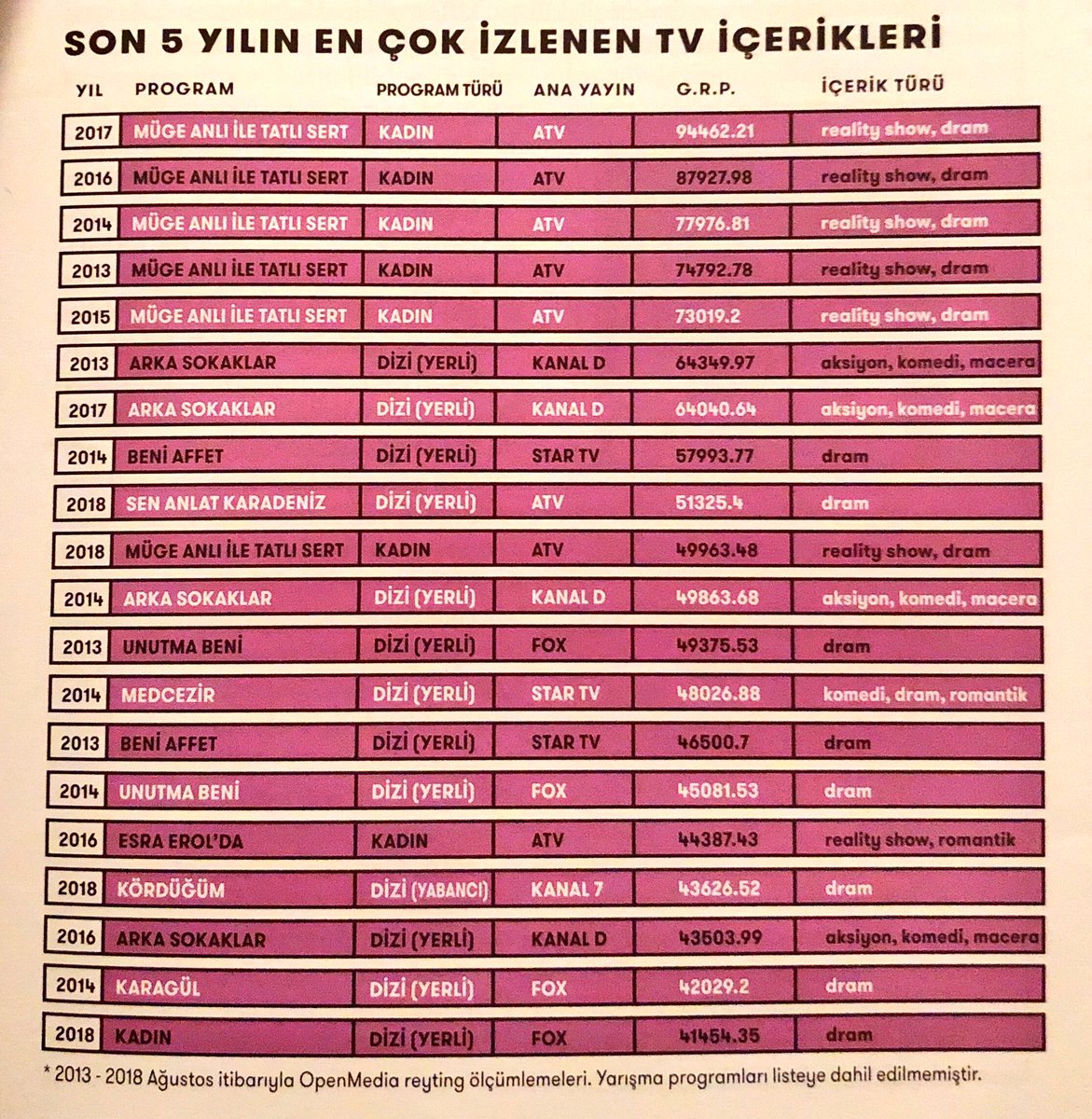 M Serdar Kuzuloglu على تويتر Bugunogrendimki Son 5 Yildir Turkiye De En Cok Izlenen Tv Icerigi Muge Anli Ile Tatli Sert Mis Sizce Neden Mediacat Eylul 18 Https T Co Wcxftvmbsw