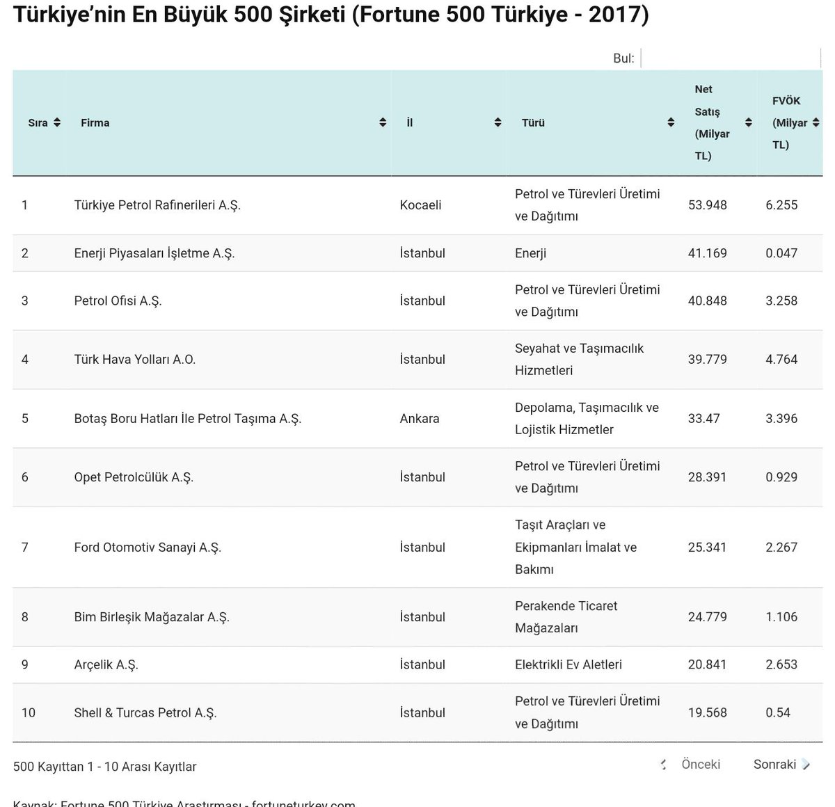 Dunya Nin Verisi On Twitter Fortune 500 Turkiye Nin En Buyuk 500 Sirketi Listesi 252 Sinin Merkezi Istanbul Da 36 Sin Enerji Sektorunde En Buyuk Firma Turkiye Petrol Rafinerileri A S Aciklamalar Ve Tum Liste Icin Https T Co X1ph534uf9