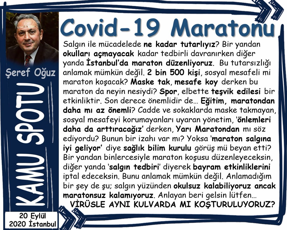 Seref Oguz On Twitter Egitime Hayir Maratona Evet Salginla Mucadelede Ikircil Tutum Tedbir Icin Okullari Kapali Tutuyoruz Ancak Maratonsuz Yapamiyoruz Istanbul Maratonunda Binlerce Kisi Kosuyor Ama Milyonlara Evde Kal Diyoruz Kamuspotu