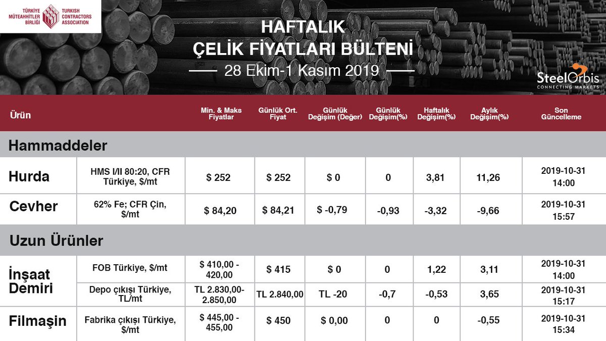 Turkiye Muteahhitler Birligi على تويتر Insaat Demiri Fiyatlari Tum Bolgelerde Dustu Tmb Uyelerine Ozel Steelorbis Ortakliginda Haftalik Olarak Yayinlanan Celik Fiyatlari Bulteninden Guncel Rakamlar Constructtheworld Turkiyemuteahhitlerbirligi