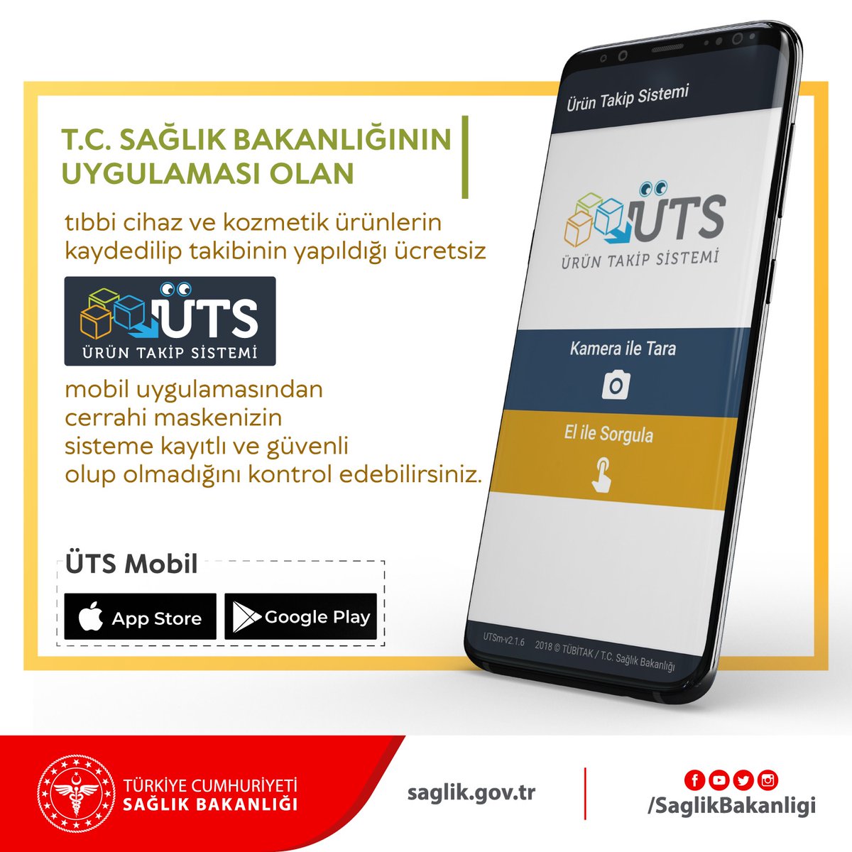 T C Saglik Bakanligi On Twitter T C Saglik Bakanliginin Uygulamasi Olan Tibbi Cihaz Ve Kozmetik Urunlerin Kaydedilip Takibinin Yapildigi Ucretsiz Uts Urun Takip Sistemi Mobil Uygulamasindan Cerrahi Maskenizin Sisteme Kayitli Ve Guvenli Olup
