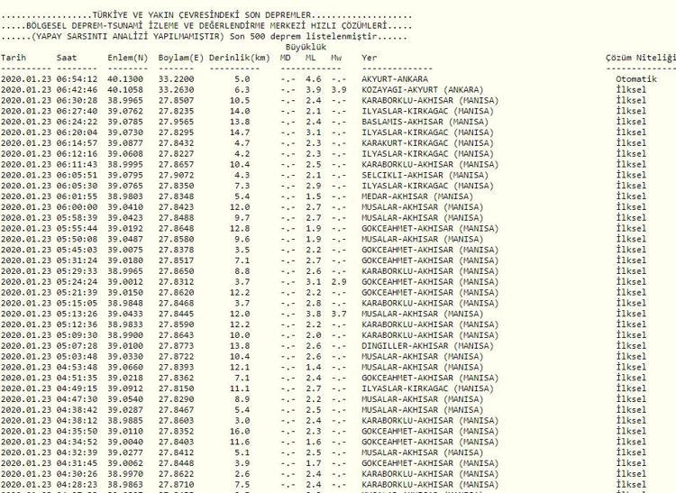 Son Dakika Deprem Tablosu Kandilli Ve Afad Son Depremler Gunun Haberleri