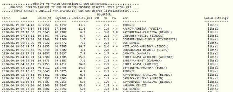 Deprem Mi Oldu Afad Ve Kandilli 19 Haziran Son Depremler Verileri Son Dakika Flas Haberler
