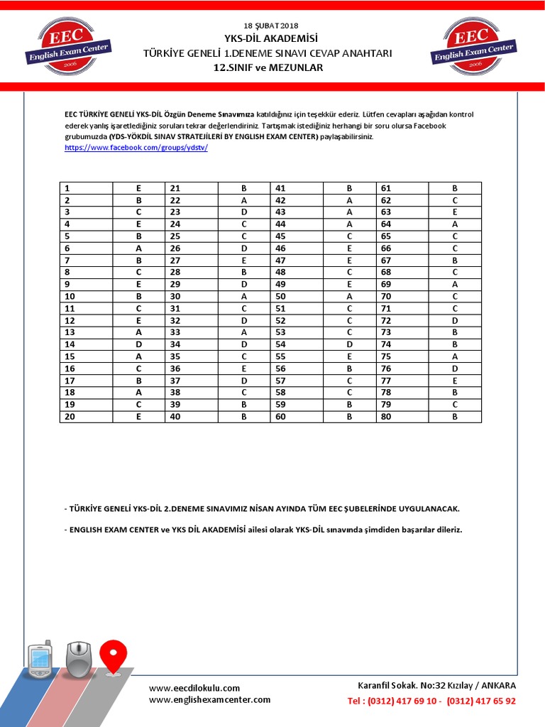 Eec Turkiye Geneli Yks Dil 12 Sinif 1 Deneme Sinavi Cevap Anahtari
