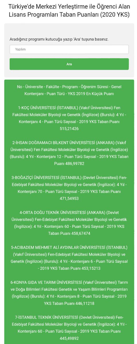 Dunya Nin Verisi On Twitter Turkiye De En Yuksek Taban Puanli Genetik Bolumleri 1 Koc Burslu 4 Kontenjan 515 21 2 Bilkent Burslu 12 Kontenjan 487 00 3 Bogazici 70 Kontenjan 471 55 4 Odtu 60 Kontenjan 458 67 Covid19 Universitelerin En