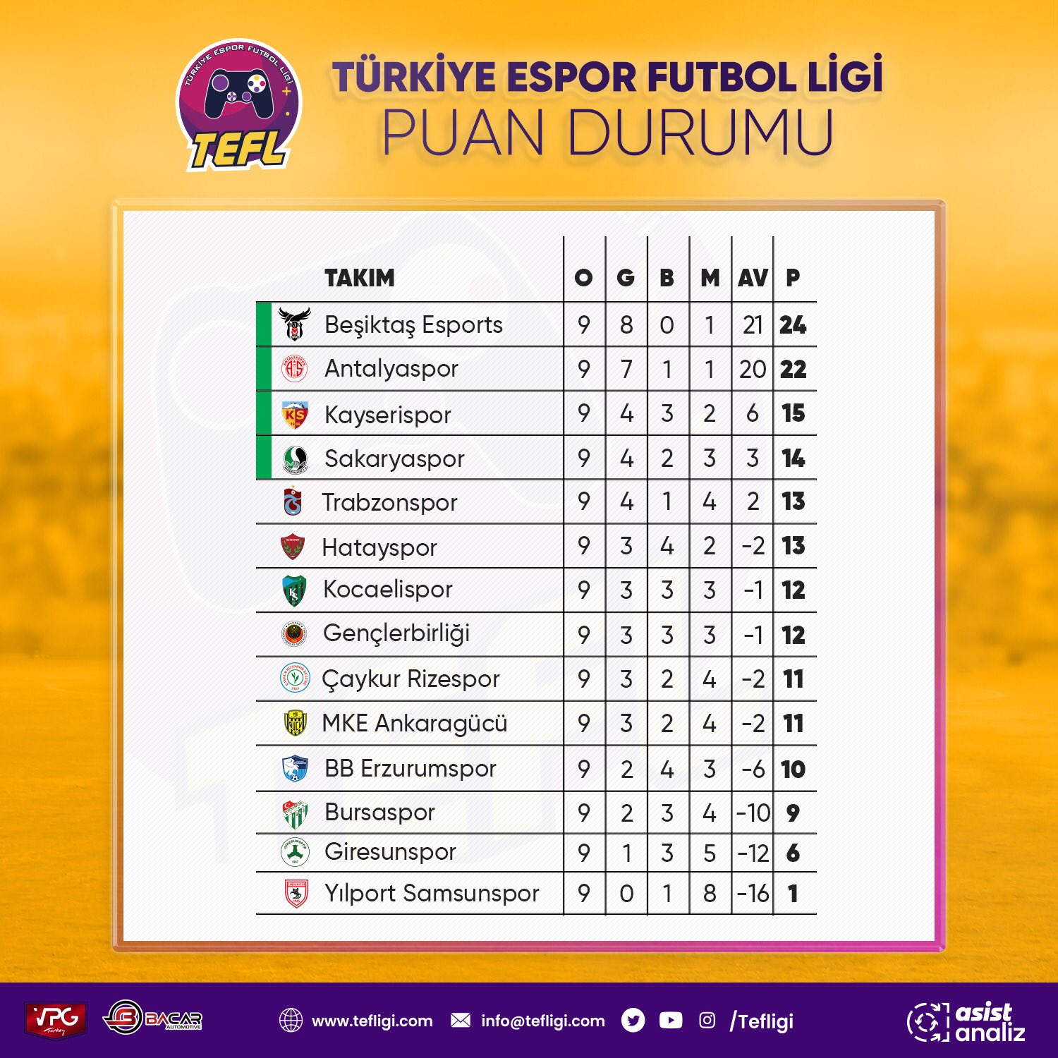 Turkiye Espor Futbol Ligi On Twitter Turkiye Espor Futbol Ligi Nde 9 Hafta Maclarinin Ardindan Olusan Puan Durumu Bilgilendirme Ligimizde Ilk 4 E Giren Takimlar Aralarinda Play Off Oynayarak Sampiyonu Belirleyeceklerdir Bacar Otomotiv