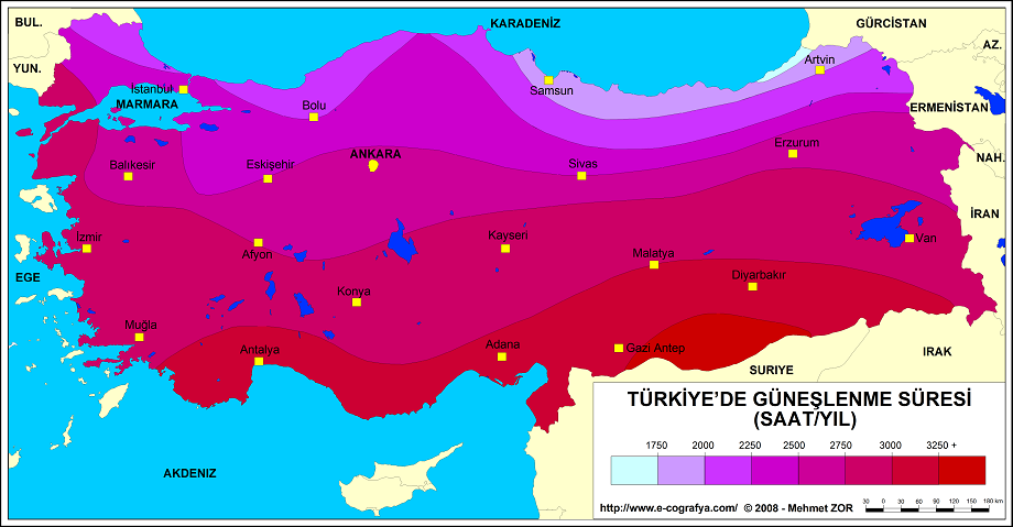 Turkiye Guneslenme Sureleri Haritasi