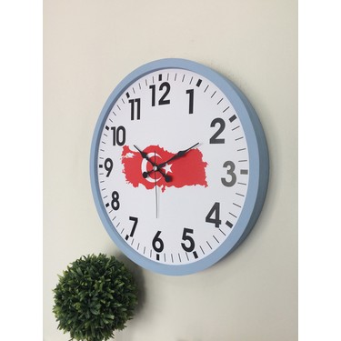 Platin Saat 36 Cm Ahsap Mavi Turkiye Harita Duvar Saati Fiyati