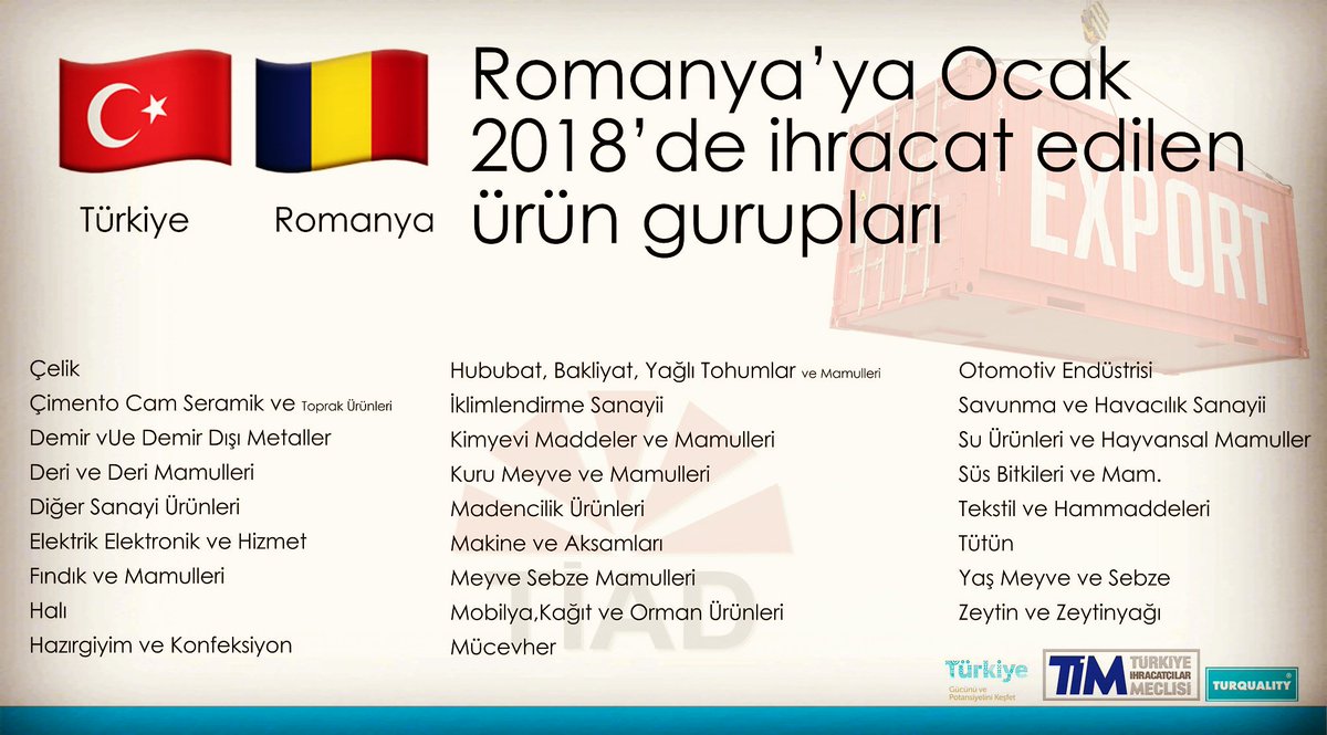 Tiad Romanya Di Twitter Romanya Ya Ocak 2018 De Ihracat Edilen Urun Guruplari Turkeyinromania Turkey Romania Export Turkishexporter Ihracat Https T Co Ig3gazixv6
