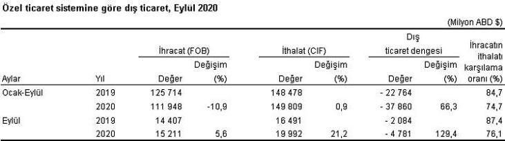 Turkiye Istatistik Kurumu Dis Ticaret Istatistikleri Eylul 2020