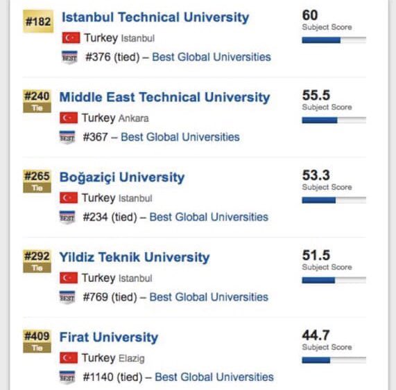 Yilmaz Taptik On Twitter Urap Verilerine Gore Muhendislik Bolumleri Itibsriyle Ulkemizdeki En Basarili Universiteler Siralamasi Soldaki Dunya Da Sagdaki Turkiye De Https T Co H4eoriyebg
