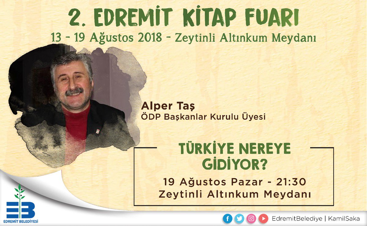 Edremit Belediyesi على تويتر Odp Baskanlar Kurulu Uyesi Alper Tas Turkiye Nereye Gidiyor Soylesisiyle 2 Edremit Kitap Fuari Nda Edremitkitapfuari Alper Tas Https T Co Phmfwuy659