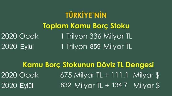 Huseyin Hakki Kahveci على تويتر Turkiye Nin Toplam Kamu Borc Stogu Ocak 2020 1tirilyon 336 Milyar Tl Agustos 2020 1 Trilyon 859 Milyar Tl 8 Ayda Borc 523