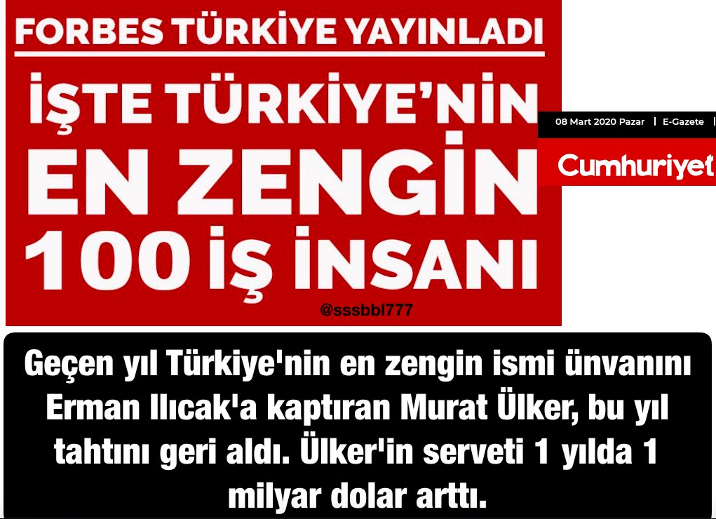 Sssbbl777 A Twitter Gecen Yil Turkiye Nin En Zengin Ismi Unvanini Ermanilicak A Kaptiran Muratulker Bu Yil Tahtini Geri Aldi Ulker In Serveti 1 Yilda 1 Milyar Dolar Artti Https T Co R2fkr2fyhl