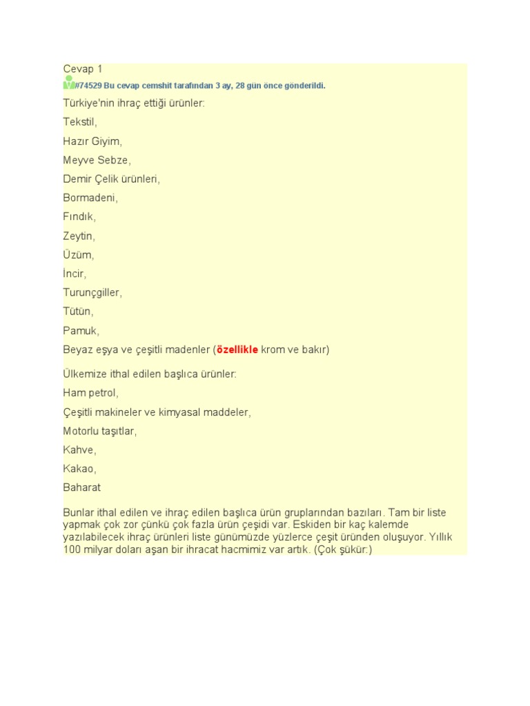 Turkiye Nin Ihrac Ettigi Urunler Nelerdir Eodev Com
