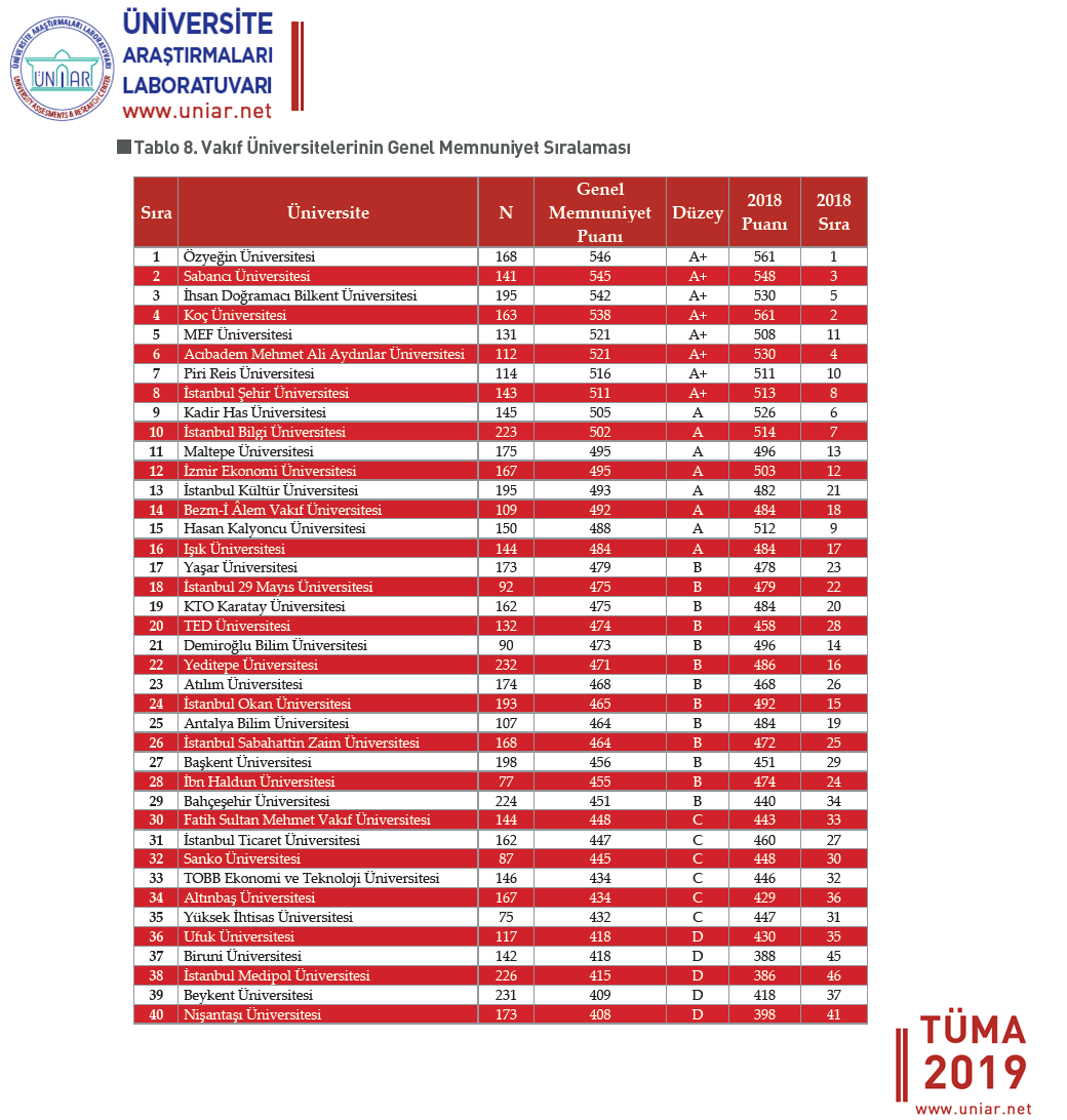 Vakif Universitelerinin Genel Memnuniyet Siralamasi Sinav Takvim