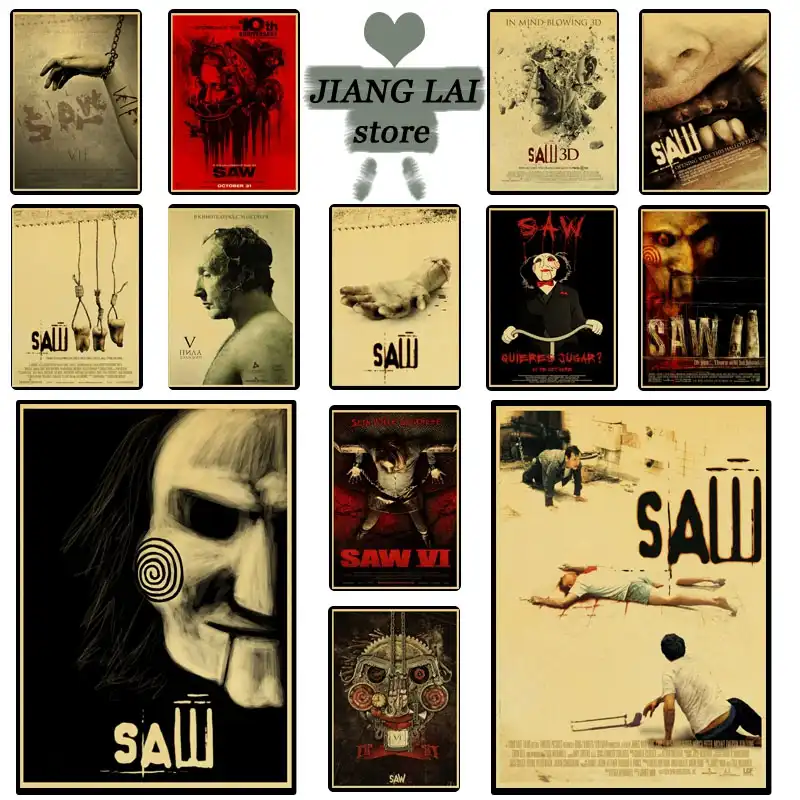 Vintage Poster Saw Classic Horror Movie Posters Tableau Mural Wall Painting For Bar Pub Haunted House Painting Calligraphy Aliexpress