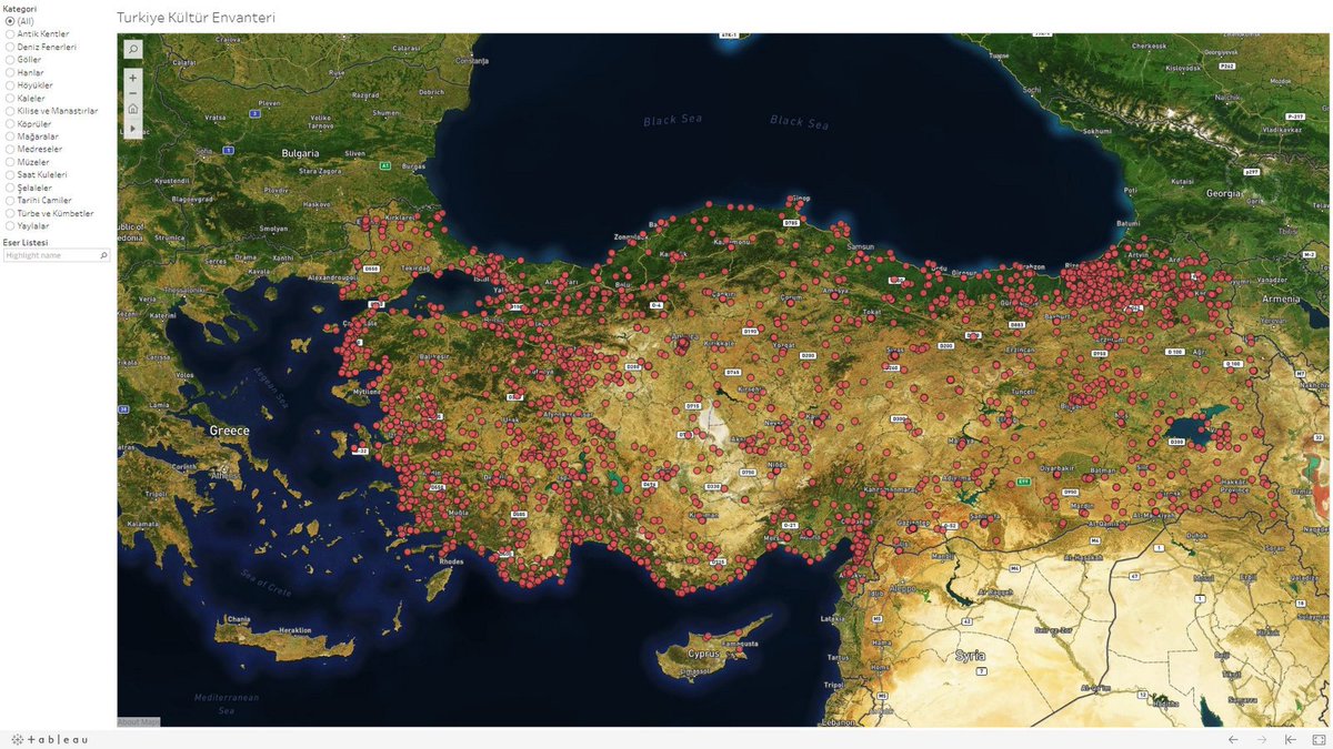 Caner Cangul على تويتر Turkiye Kultur Eserleri Nin Harita Konumlarini Tableau Kullandigim Bir Ornekle Siteye Yerlestirdim Zamanla Gelistirilince Daha Kullanisli Olur Gibi Geldi Istanbul A El Atmadim Henuz Https T Co Fr6bi2bolw Https T Co
