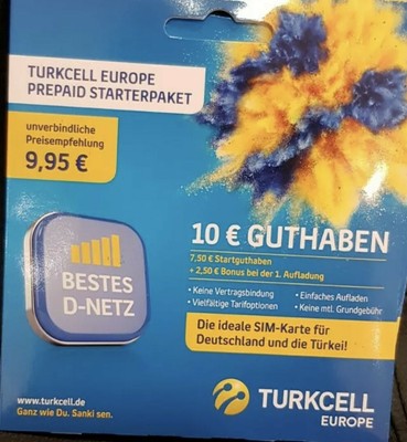 Turkcell Prepaid Card With Up To 10 Euros Start Credit Amazon De Elektronik