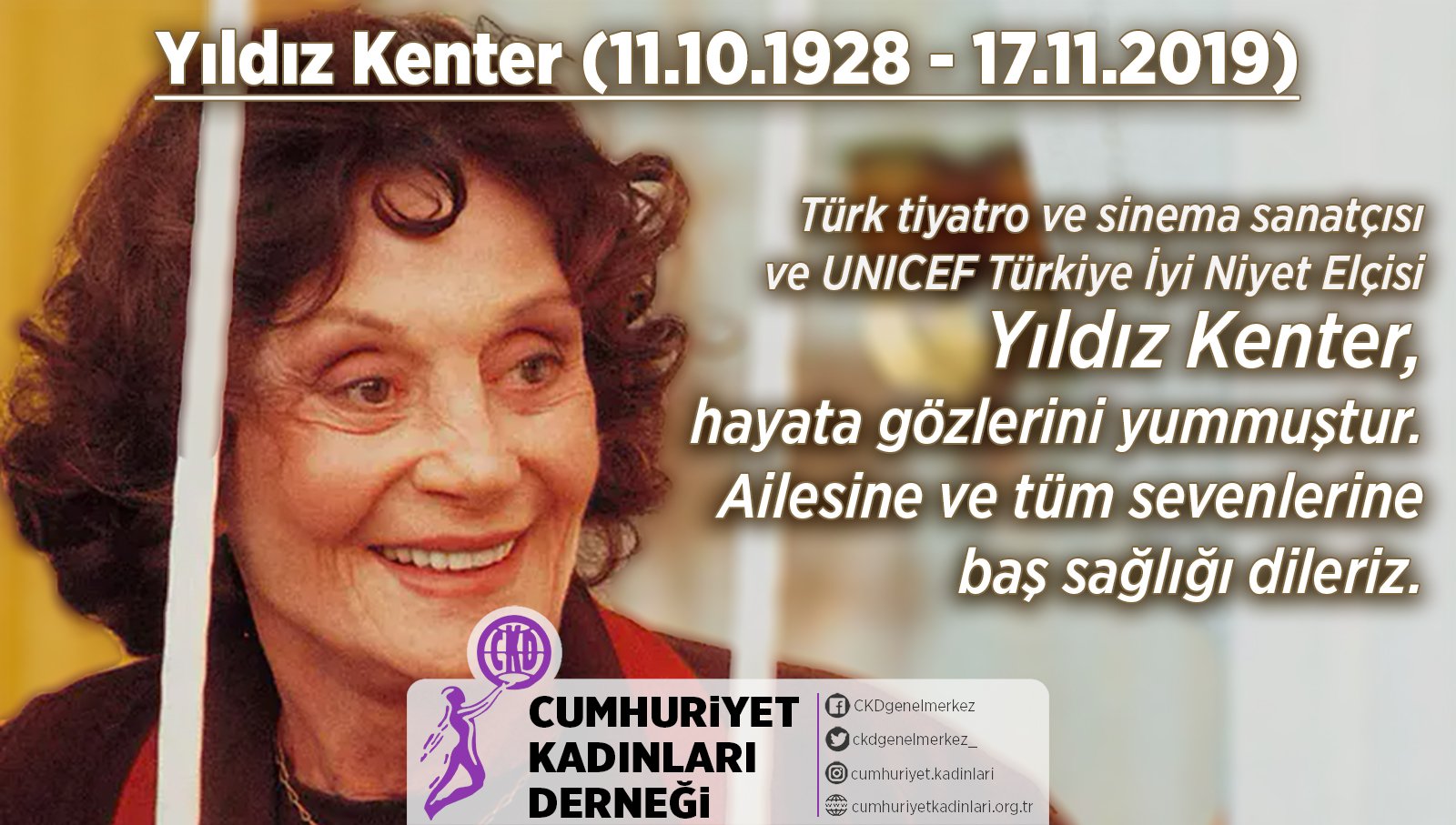 Cumhuriyet Kadinlari Dernegi Ckd على تويتر Turk Tiyatro Ve Sinema Sanatcisi Ve Unicef Turkiye Iyi Niyet Elcisi Yildizkenter Hayata Gozlerini Yummustur Ailesine Ve Tum Sevenlerine Bas Sagligi Dileriz Https T Co Mmufvjv0n1