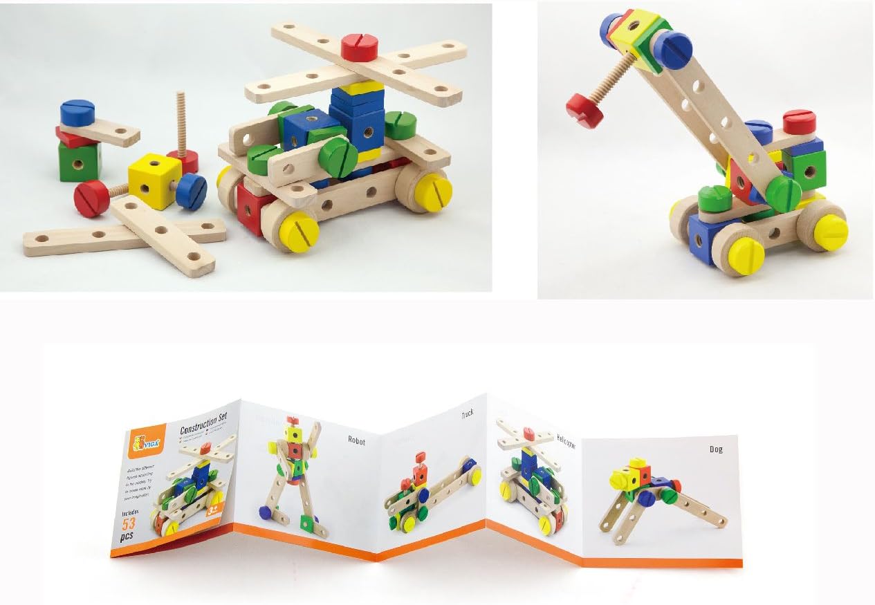 Viga Wooden 53 Piece Model Construction Set Childrens Wood Block Building Kit Amazon Co Uk Toys Games