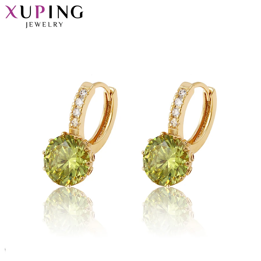 Xuping Jewelry Beautiful Design Round Stones Inlay Gold Color Plated Earrings For Women Thanksgiving Gift 27431 Hoop Earrings Aliexpress