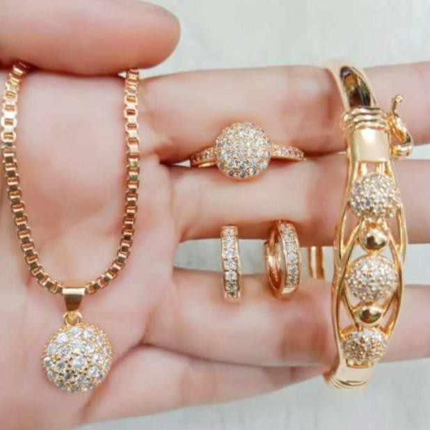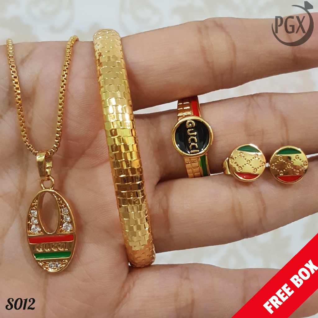 Pgx Set Perhiasan Xuping Cincin Gelang Kalung Anting Lapis Emas S012 Shopee Indonesia