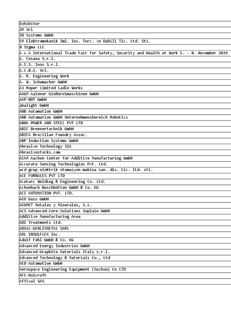 Exhibitors At Gifa Xlsx Foundry Limited Company