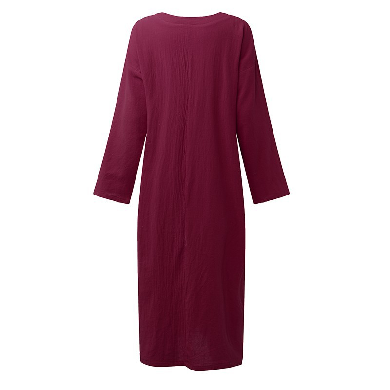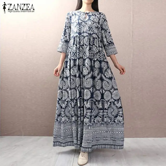 Zanzea Kadinlar Vintage Zarif Elbise Sonbahar O Boyun 3 4 Kollu Cepler Splice Casual Gevsek Maxi Uzun Boy Elbise Vestidos Kategoride Elbiseler Www5 Forshopsalon Co