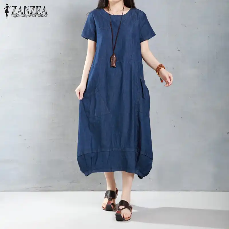 Zanzea 2020 Summer Denim Dress Women Elegan Short Sleeve Solid Midi Dress Female Vintage Casual Baggy Vestido Plus Size Sundress Dresses Aliexpress