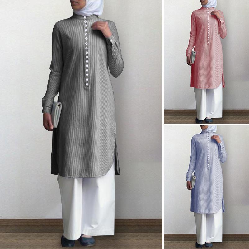 Zanzea Musluman Moda Cizgili Gomlek Uzun Ustler Kadin Gevsek Casual O Yaka Uzun Kollu Dugme Gomlek Pakistan Turk Islami Giyim Online Alisveris Sitesi Joom Da Ucuza Alisveris Yapin