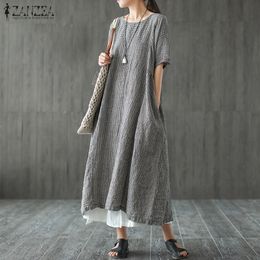 Zanzea 2020 Summer Dress Women Vintage Plaid Check Long Maxi Dress Female Casual Short Sleeve Party Vestidos Sundress Plus Size Dresses Aliexpress